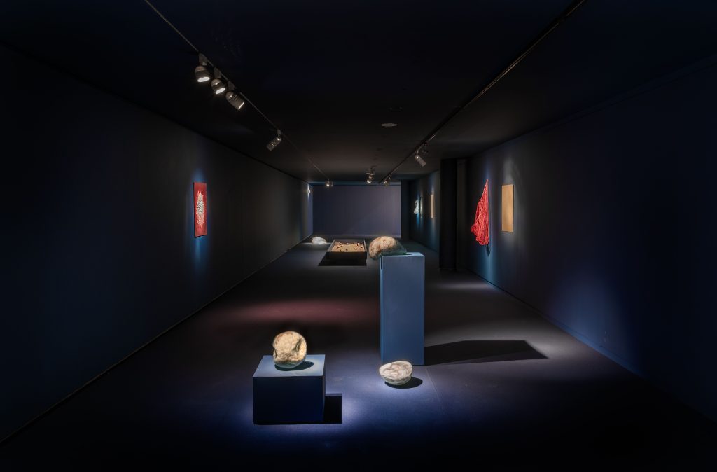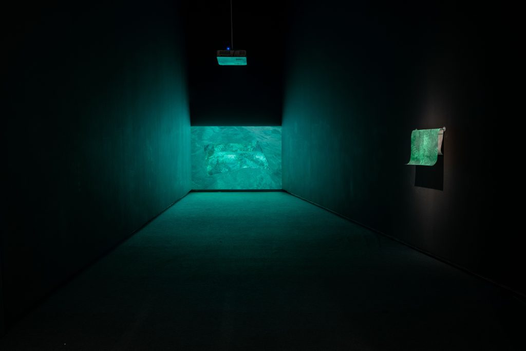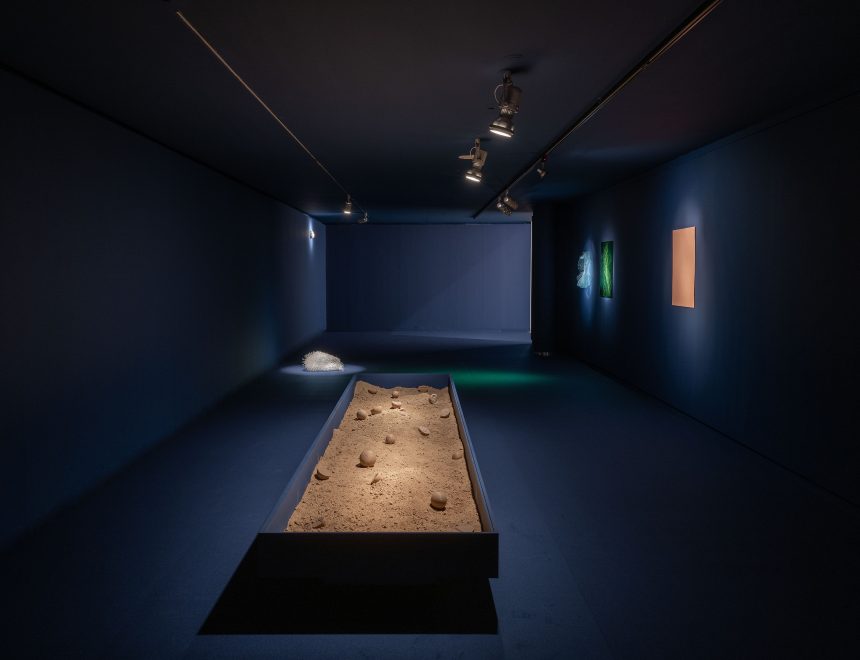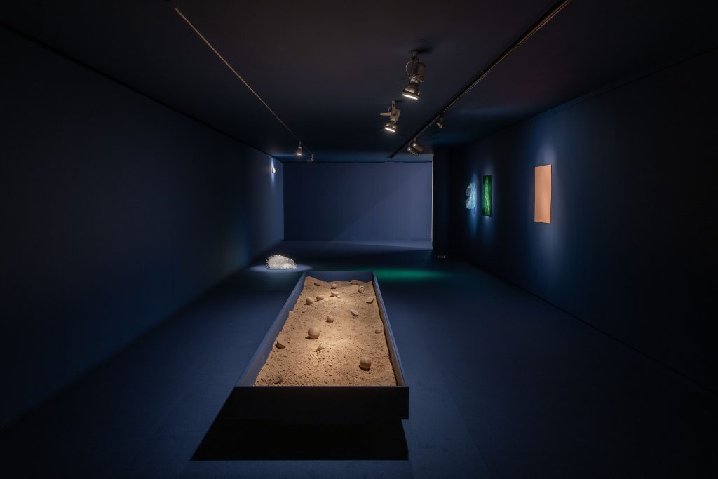 Ambdós artistes habiten el plec entre el que és material i immaterial, entre el que és terrestre i el que és abismal. El mar esdevé espill i llindar: superfície de trànsit i profunditat simbòlica. Enfront seu, la mirada no es retrau; s’obri. Esta exposició convida a habitar l’ambigüitat, a reconéixer en el que és insondable del mar la possibilitat d’imaginar noves maneres d’estar i de mirar el món.