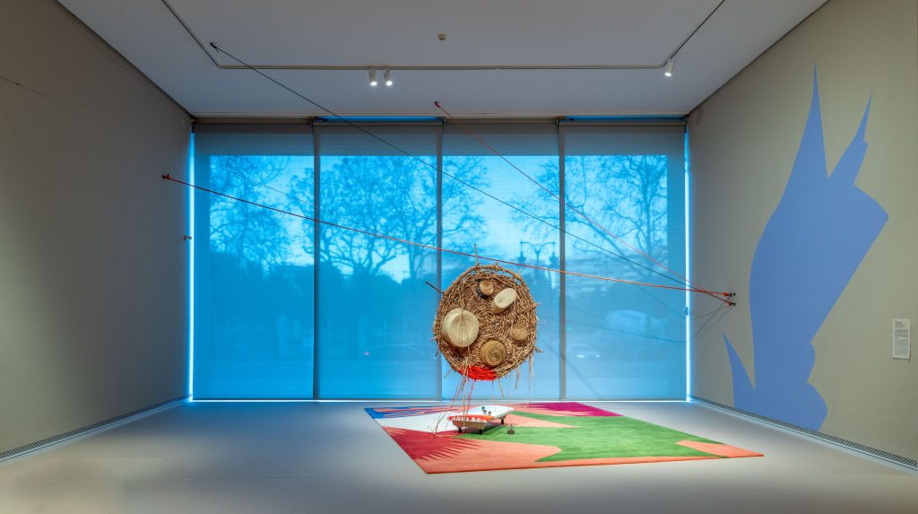 Una gran pancarta brodada amb la paraula ‘Guapa’ de Pilar Albarracín rep als visitants de la mostra. Al llarg del recorregut el públic descobrix les obres realitzades en argila vidriada de *Glenda León, les àmfores d’Antonio Fernández *Alvira que partixen de la tradició terrissaire, les flors blaves de porcellana de Noemi Iglesias *Barrios elaborades manualment utilitzant un pigments extrets de telèfon mòbils rebutjats o peces ceràmiques de Marta Font elaborades amb terres procedents de S’Estaca (Valldemossa).
